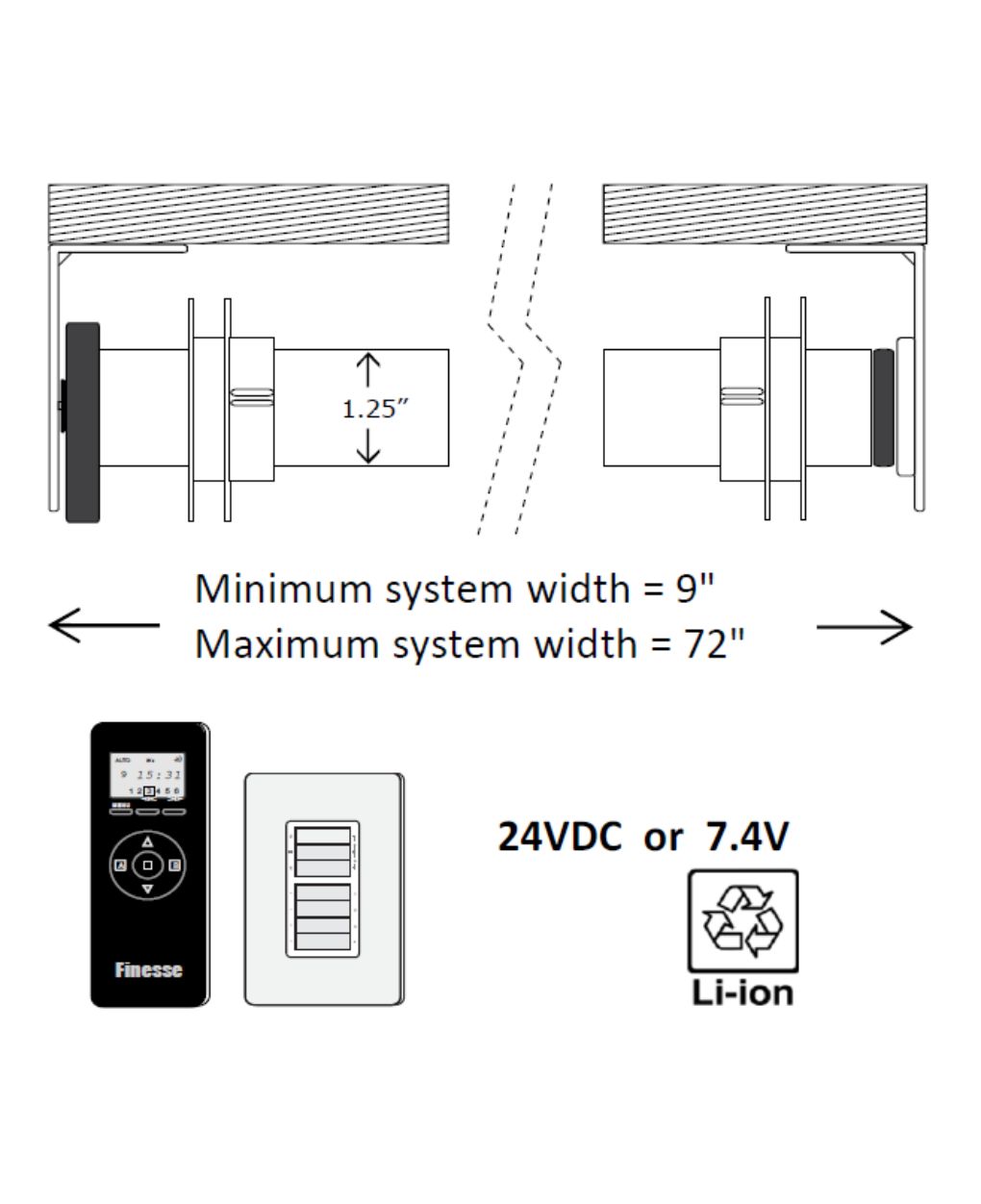 Includes a 6-channel RF remote control (optional timer) and a 4-channel wireless wall switch, compatible with all Finesse drape & shade systems and integrates with major automation systems.