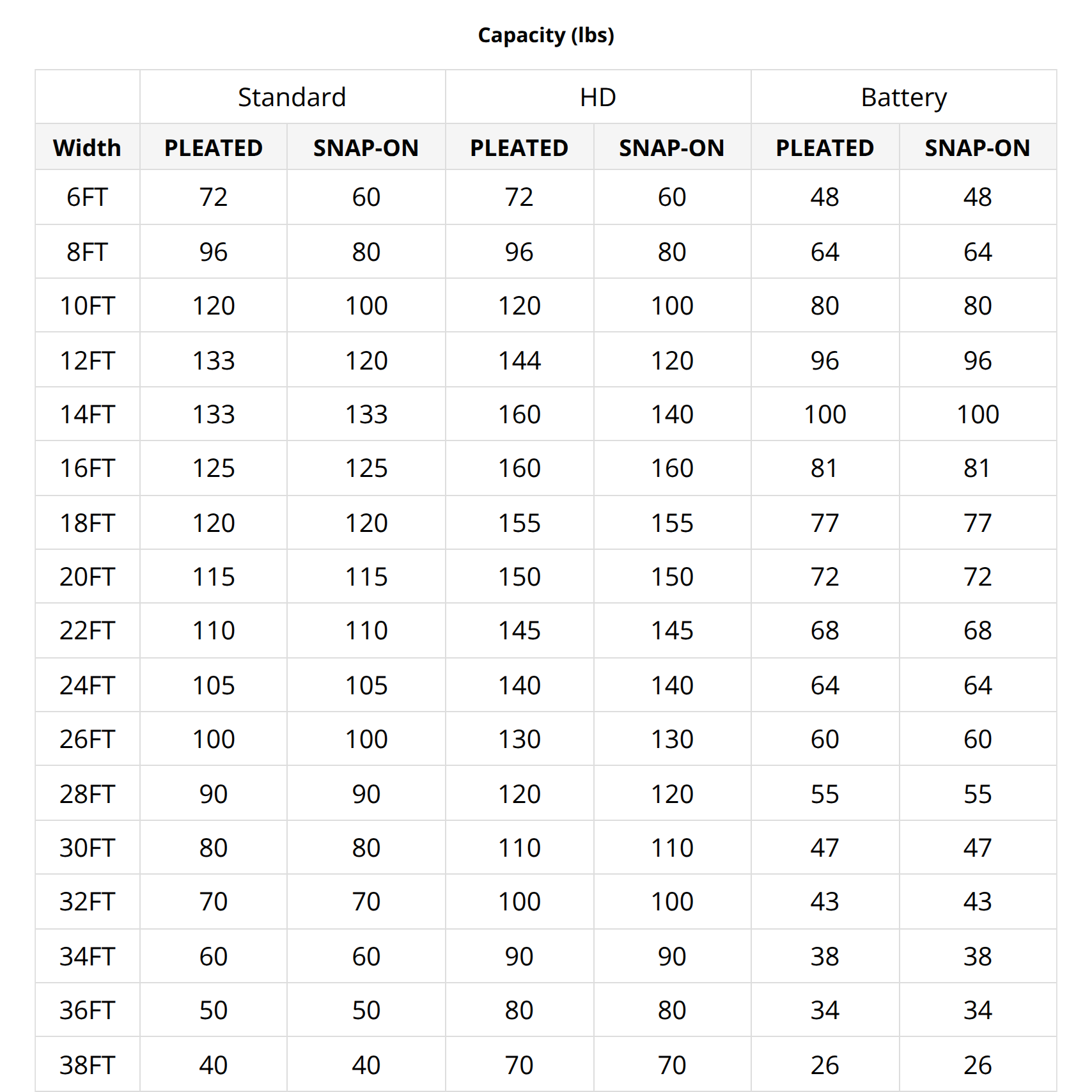 Capacity (lbs)