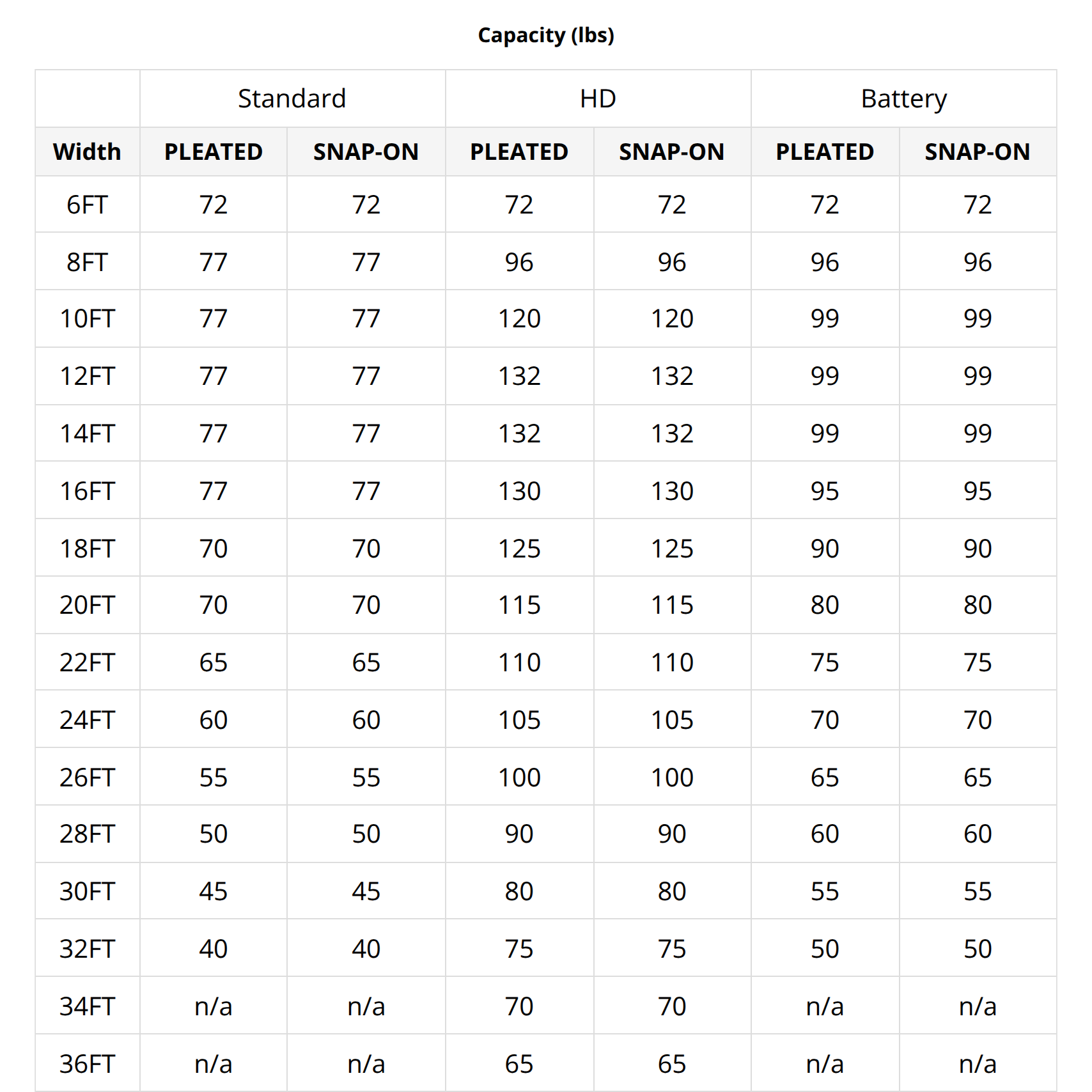 Capacity (lbs)